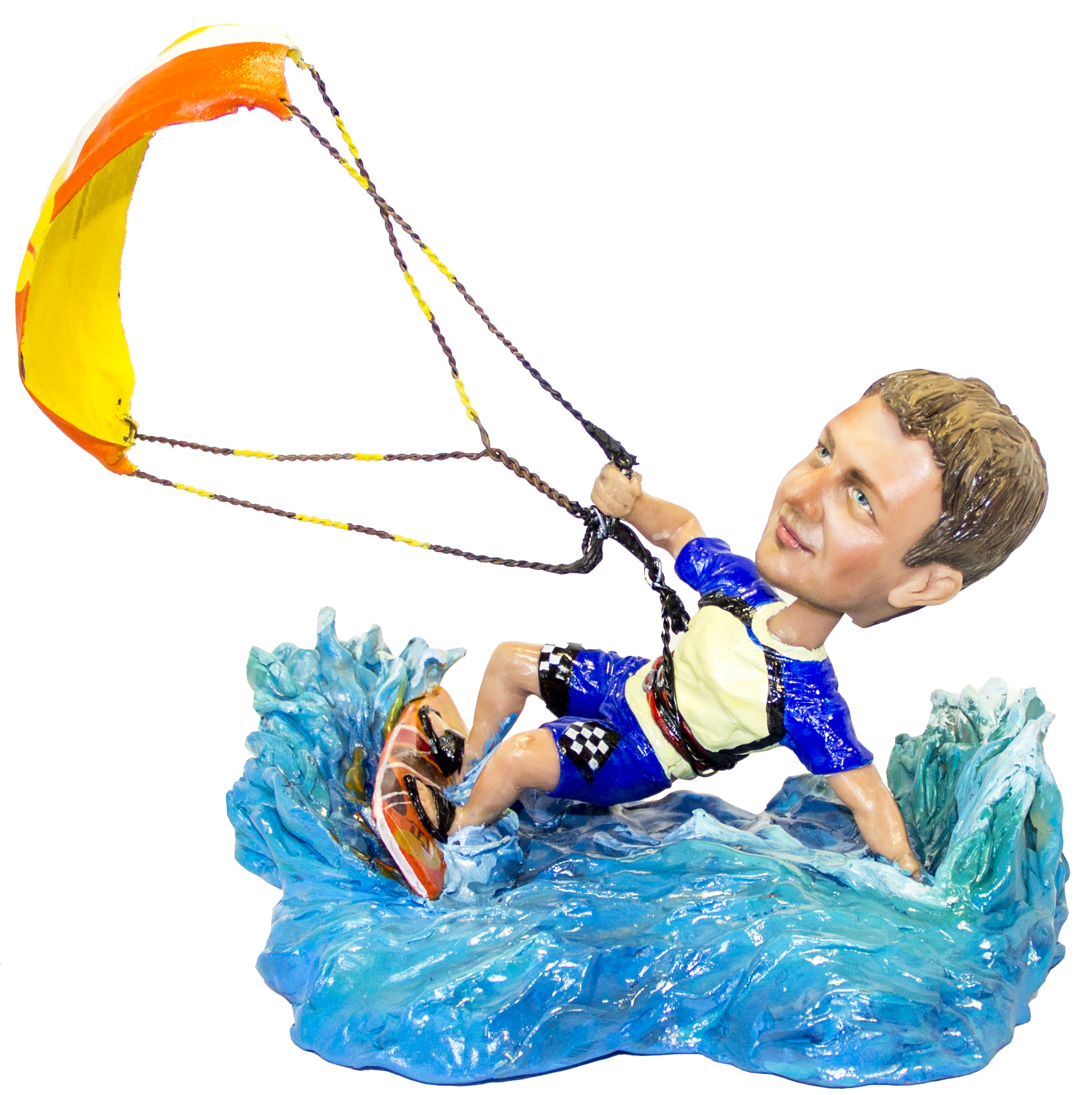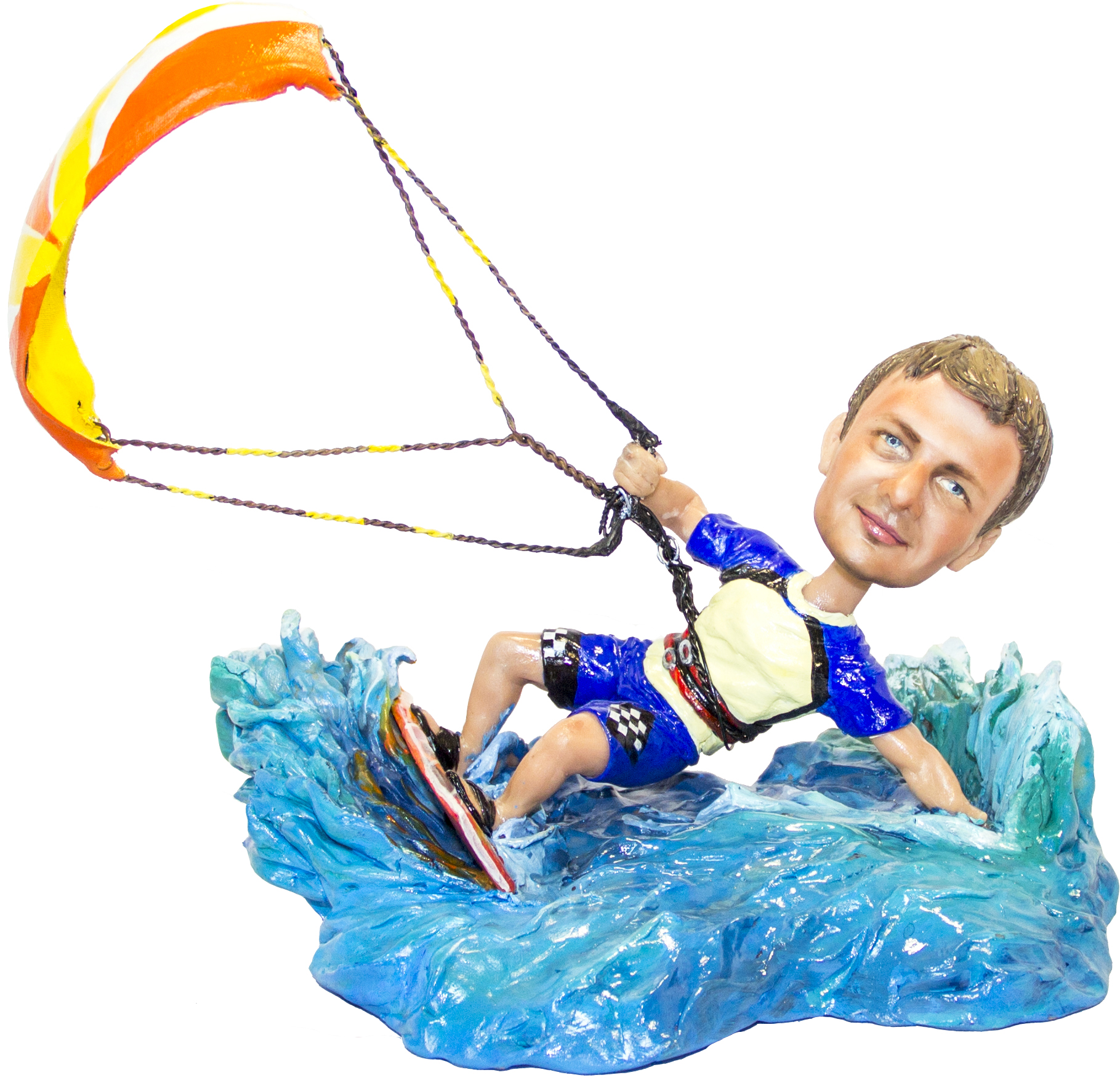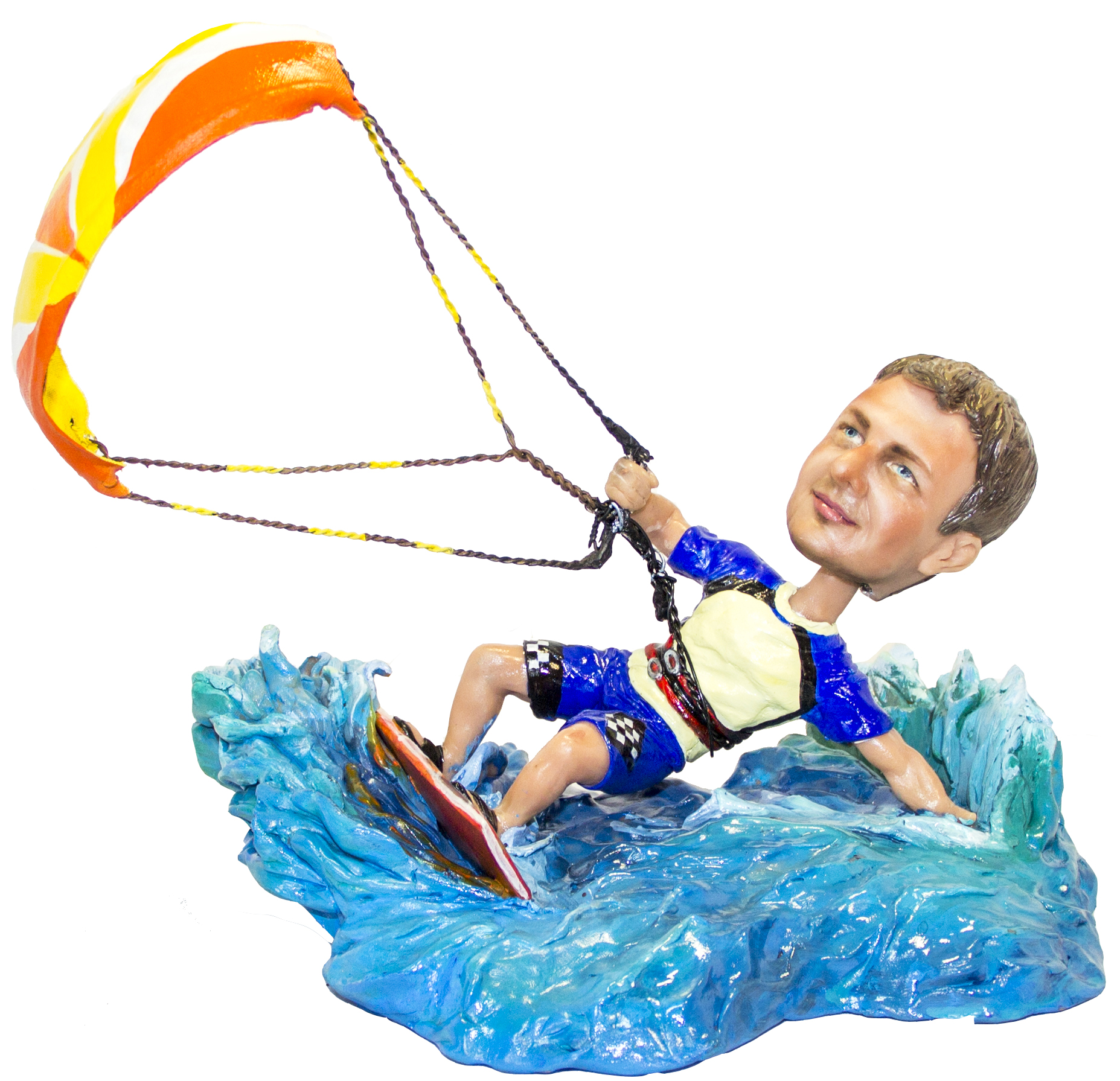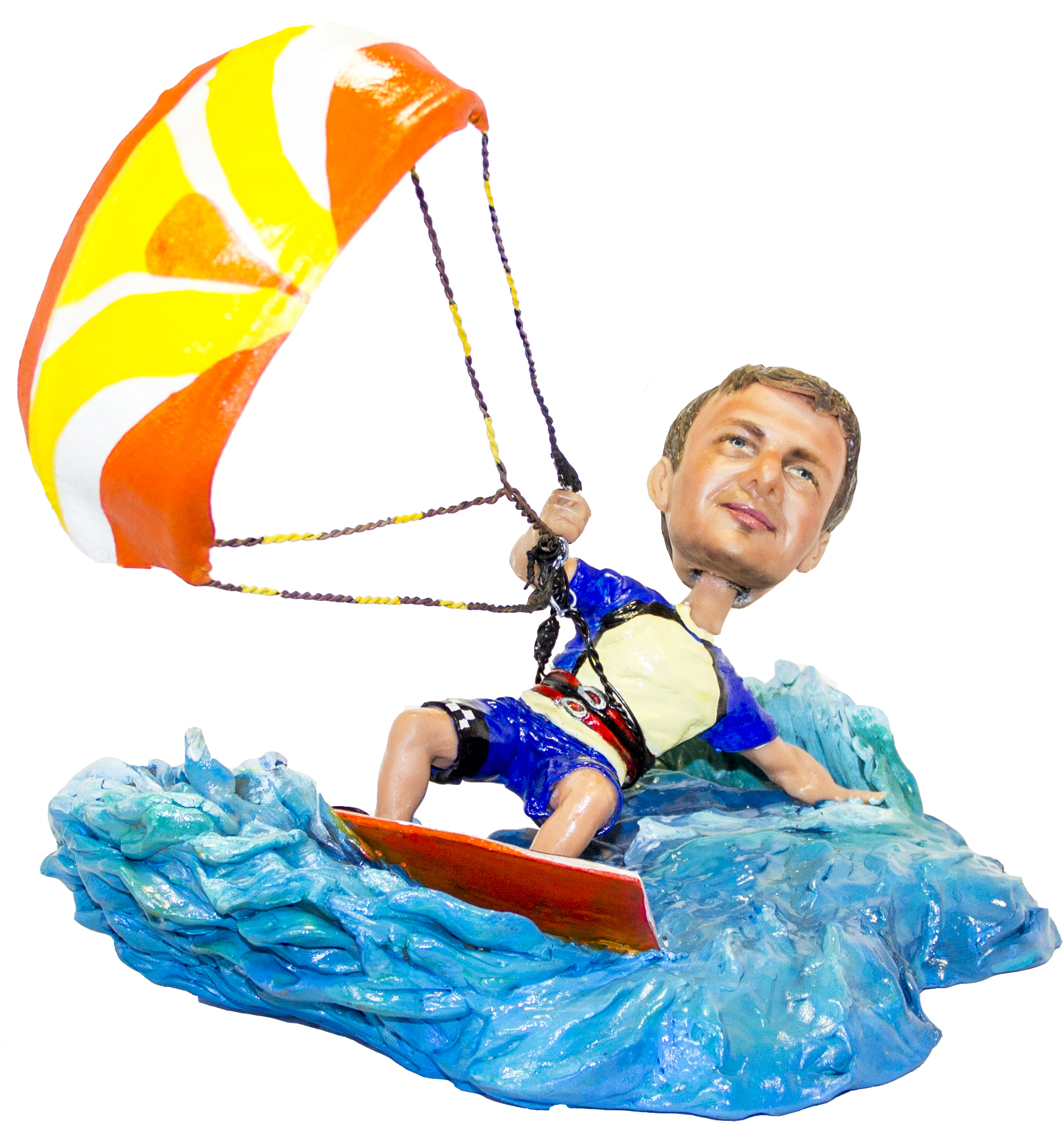 Подарок кайтсерферу по его фото. Эксклюзивный подарок ручной работы для кайтсерфера. Размеры статуэтки: - высота 24 см. - ширина 23 см. Статуэтка выполнена по...Подарок кайтсерферу по его фото. Эксклюзивный подарок ручной работы для кайтсерфера. Размеры статуэтки: - высота 24 см. - ширина 23 см. Статуэтка выполнена по фотографиям портретного сходства.* Важно - после внесения предоплаты, наши Скульпторы начнут работу над проектом. Как только будет готова модель головы, Вы сможете увидеть фотографии в своем Личном Кабинете. Уведомление о готовности Вы получите по смс на Ваш номер и на e-mail, который укажите в момент оформления заказа. Пожалуйста, поставьте статус "Одобрено" или "На доработку" (указав моменты для корректировки) в Вашем Личном кабинете в течение 48 часов после получения уведомлений. В противном случае, мы приступим к следующему шагу процесса изготовления и не сможем вовремя внести корректировки по скульптуре.